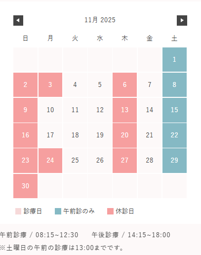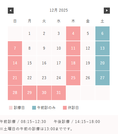 ※土曜日の午前の診療は13:00までです。